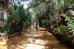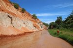 Nach einer guten Nacht hatten wir uns für den Vormittag den Fairy Stream, also den Feenlauf, vorgenommen. Hierbei handelt es sich um nicht viel mehr, als ein Rinnsal eines Flusses, durch welches man barfuß im Sand flussaufwärts watet. Pumba fragte sich, wer denn auf diese Idee gekommen wäre, dass es eine gute Touristenattraktion sei, barfuß ein Rinnsal hochzulatschen. Scheinbar war es hier aber ein großes Ding, denn rechts und links fand man zu Beginn (und unterwegs immer mal wieder) Restaurants, Snackstände, Souvenirstände oder Ähnliches. Auch ein Eintritt von 15.000 VND [ca. 0,57 €] pro Person wurden verlangt. Grundsätzlich handelte es sich hierbei aber um eine schöne, entspannte und idyllische Wanderung durch ein Flussrinnsal, das einem bis zu den Knöcheln reichte.